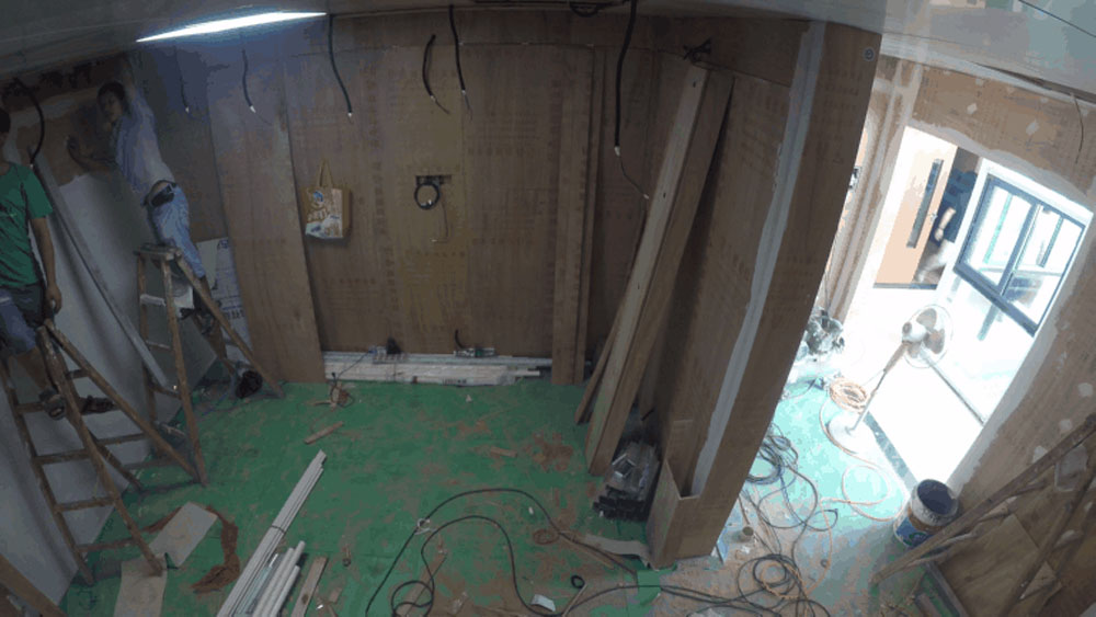 緊接著是封墻及搭建龍骨架,展廳初現雛形