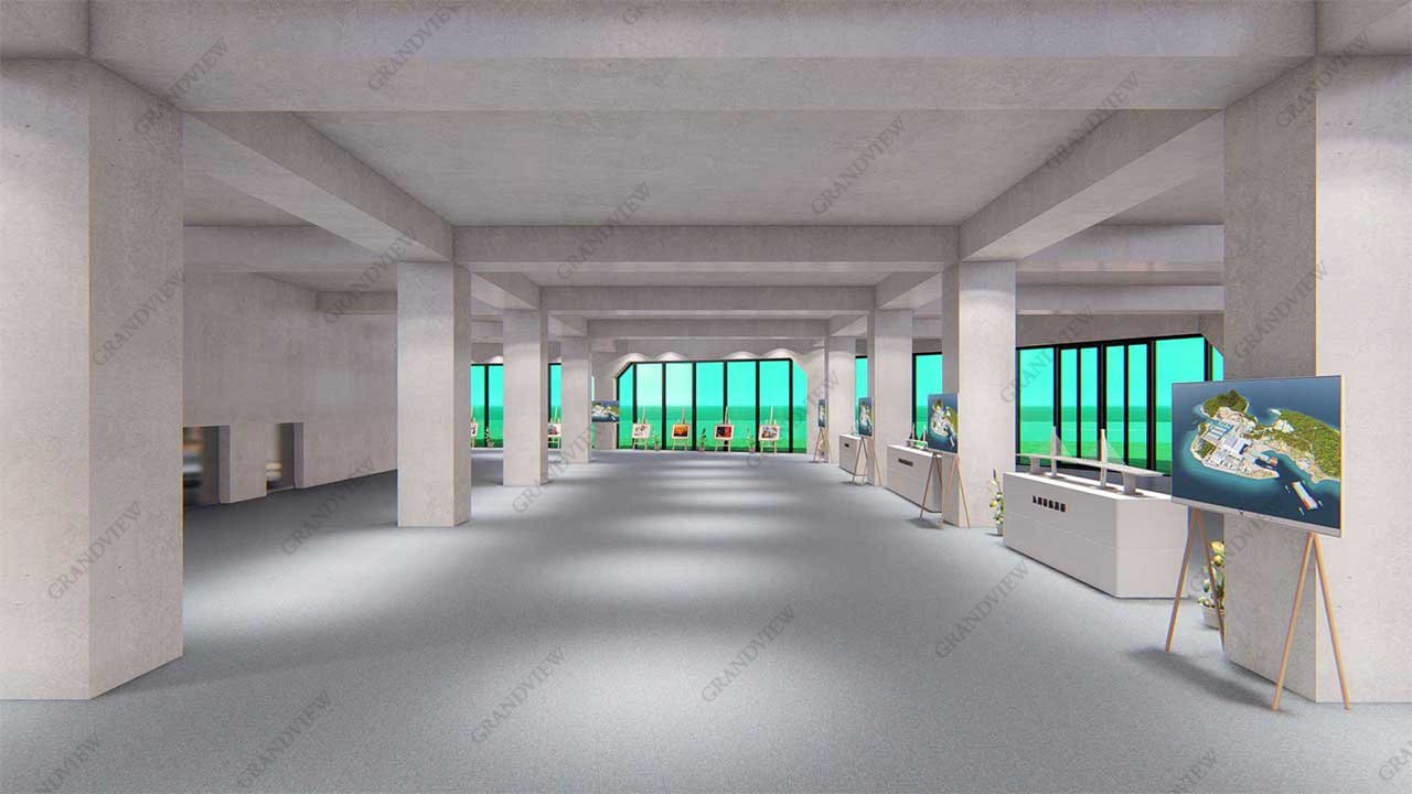 為更好地與客戶進行溝通,并最大程度提升模擬現場觀感,廣角品牌機構通過三維建模,將展廳外觀、內部環境制作成模型效果圖,更精心制作了展覽模擬漫游動畫,為現場匯報作足功夫。